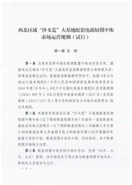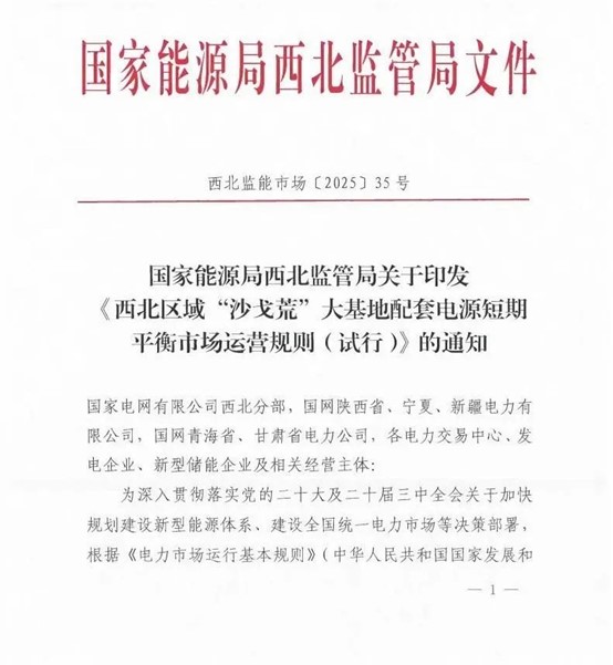 中國儲能網(wǎng)訊:在西北廣袤的“沙戈荒”地帶,一場重塑能源格局的變革正悄然展開。隨著國家能源局西北監(jiān)管局5月15日正式發(fā)布《西北區(qū)域“沙戈荒”大基地配套電源短期平衡市場運營規(guī)則(試行)》,我國儲能產(chǎn)業(yè)發(fā)展迎來里程碑式的政策突破。這項創(chuàng)新機(jī)制不僅為沙漠戈壁中的新能源基地注入市場活力,更以其獨特的制度設(shè)計為全球能源轉(zhuǎn)型提供了可借鑒的“中國方案”。