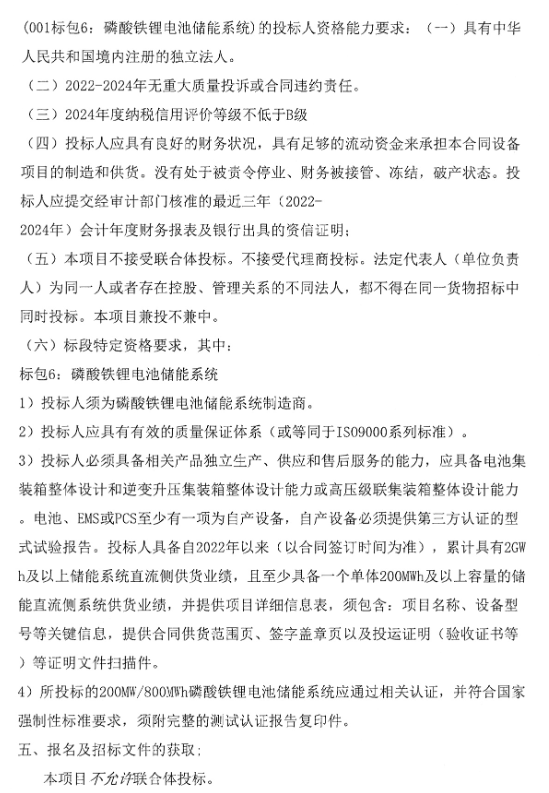 本次招標(biāo)為其中的標(biāo)包6:磷酸鐵鋰電池儲(chǔ)能系統(tǒng)。