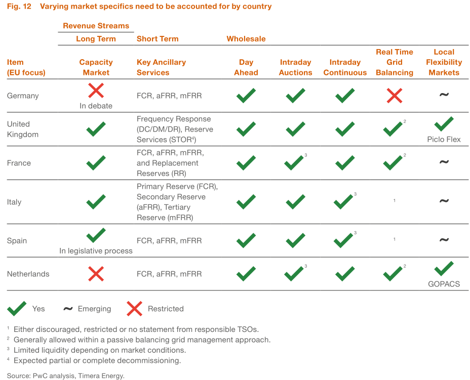 歐盟缺乏統(tǒng)一戰(zhàn)略:需選擇性進入市場,規(guī)避限制性政策(如部分市場仍禁止儲能參與特定輔助服務)。