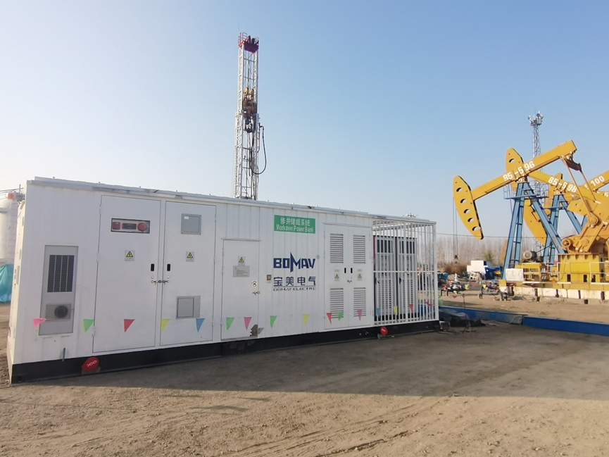 在另一個遼河油田項目中,寶美電氣與南都電源聯(lián)合建設的儲能系統(tǒng),可自動識別鉆修井作業(yè)工況,動態(tài)匹配發(fā)電機啟停策略,實現(xiàn)恒壓電流輸出,減少了能源浪費。儲能系統(tǒng)的建設,可為單口鉆井作業(yè)節(jié)約20萬元左右費用。
