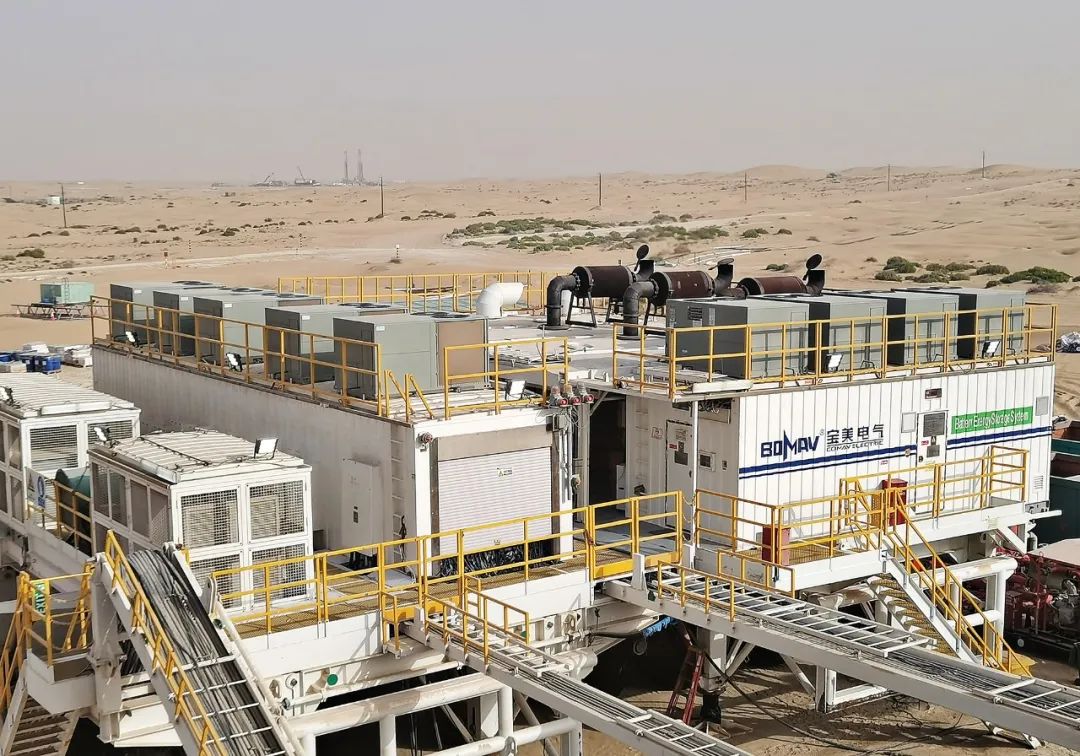 項目采用儲能與柴油發(fā)電并行的用能方案,單套“綠色鉆機”每年可節(jié)約電能約12萬千瓦時,運行期間碳排放減少10%以上,全井作業(yè)周期平均節(jié)油10%至15%,減碳量相當于種植1.1萬棵樹,助力了中東產(chǎn)油的能源轉型。