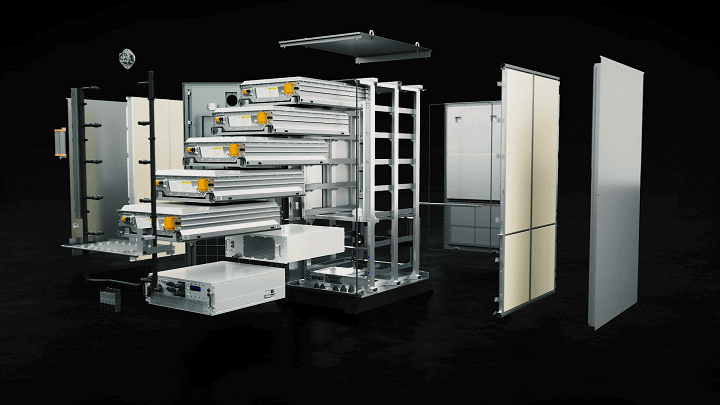 高性能PCS、智慧能源管理系統(tǒng)(EMS)、電池管理系統(tǒng)(BMS)、高壓電池控制、環(huán)境控制系統(tǒng)融于單個機(jī)柜。