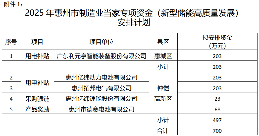 附件:1.2025年惠州市制造業(yè)當家專項資金(新型儲能高質量發(fā)展)安排計劃