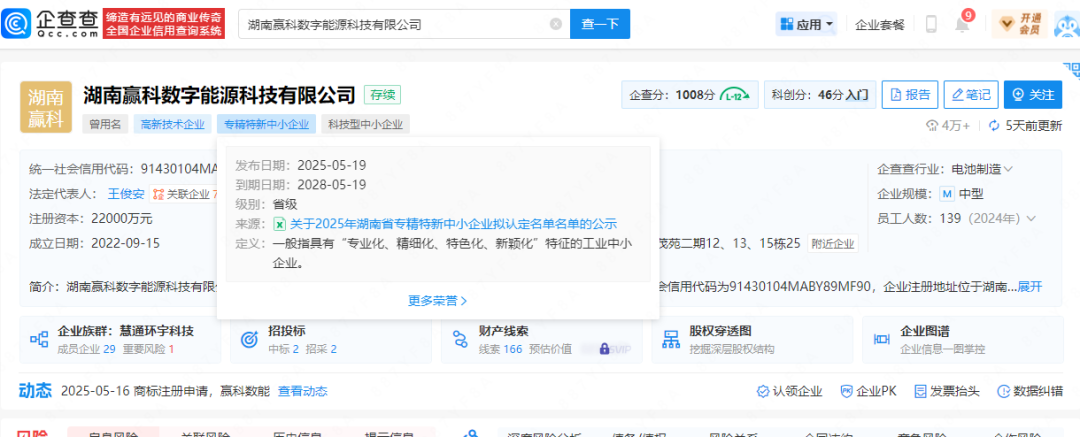 中國儲能網(wǎng)訊:近日,湖南省工業(yè)和信息化廳正式公布2025年度湖南省“專精特新”中小企業(yè)認(rèn)定名單,湖南贏科數(shù)字能源科技有限公司(以下簡稱“贏科數(shù)能”)憑借在能源數(shù)字化領(lǐng)域的專業(yè)化技術(shù)實力、精細(xì)化運營能力、特色化產(chǎn)品布局及創(chuàng)新化發(fā)展成果,成功通過認(rèn)定。這一榮譽標(biāo)志著公司在核心技術(shù)攻關(guān)、市場競爭力及行業(yè)影響力方面再獲權(quán)威認(rèn)可。