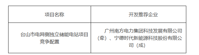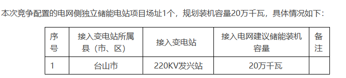 臺(tái)山市電網(wǎng)側(cè)獨(dú)立儲(chǔ)能電站項(xiàng)目競(jìng)爭(zhēng)配置結(jié)果的公示