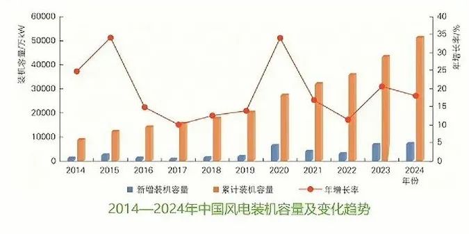 2024年,全國新增風電裝機7982萬kW, 同比增長5.5%。