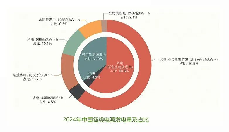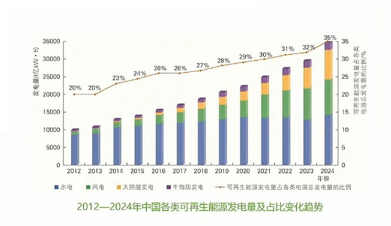 2024年,全國可再生能源發(fā)電量3.47萬億kWh, 同比增長17.6%。
