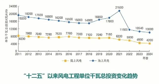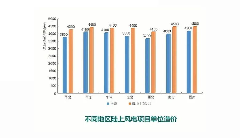 陸上風電:平原項目:3000~3500元/kW;山地項目3800~4300元/kW.