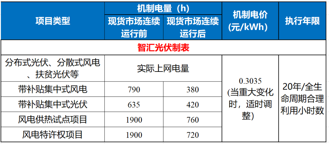 表:存量項目機制電量和機制電價規(guī)定