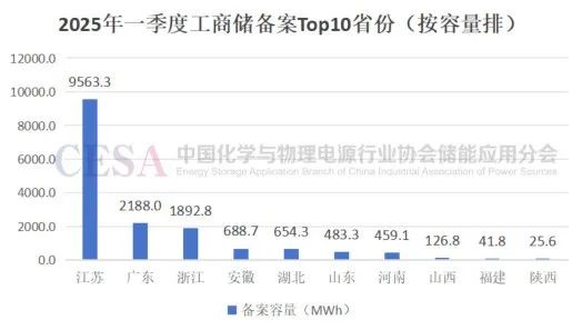 2025年第一季度,江蘇新增備案604個工商業(yè)儲能投資項目,規(guī)模高達(dá)3.86GW/9.56GWh,容量占全國新增備案的59.17%,位居全國第一,其中百MWh級以上的工商儲項目超20個,大項目數(shù)量也居全國首位,最大單體項目規(guī)模超800MWh。