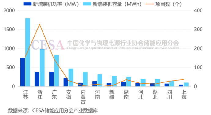 圖為2024年用戶側(cè)新型儲能新增裝機容量超100MWh的省份