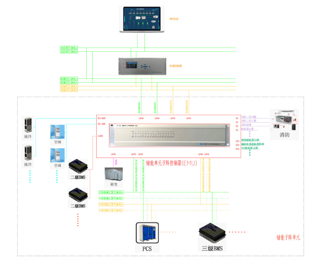 儲能單元子陣控制器(EMU)是儲能系統(tǒng)中負責對儲能單元子陣進行監(jiān)測、控制和管理的關(guān)鍵設(shè)備,是提升儲能系統(tǒng)效率、安全性與經(jīng)濟性的核心樞紐。在保障儲能系統(tǒng)安全、穩(wěn)定、高效運行方面發(fā)揮著重要作用。儲能單元子陣控制(EMU)設(shè)計兼顧實時性、可靠性與靈活性,適應(yīng)復(fù)雜多變的能源管理需求。