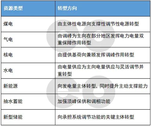 表1:不同類型電力資源的轉(zhuǎn)型方向