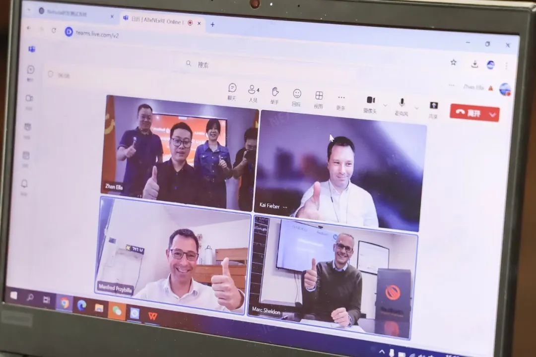 星云股份副董事長兼總裁劉作斌(左上)、德國ambibox CEO Manfred Przybilla(左下)、德國ambibox CTO Kai Fieber(右上)、澳大利亞Red Earth Energy CEO Marc Sheldon(右下)、共同參加了線上簽約