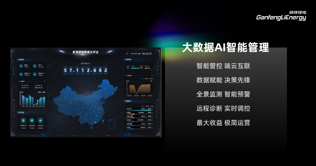 依托大數(shù)據(jù)智能管理平臺(tái)與AI決策引擎,贛鋒鋰電儲(chǔ)能系統(tǒng)構(gòu)建了“云-邊-端”三級(jí)智慧中樞,在儲(chǔ)能系統(tǒng)端實(shí)現(xiàn)端云互聯(lián)、智能管控,通過(guò)全景監(jiān)測(cè)和智能預(yù)警功能對(duì)儲(chǔ)能系統(tǒng)進(jìn)行全方位實(shí)時(shí)監(jiān)控,一旦出現(xiàn)異常,系統(tǒng)可迅速響應(yīng)并遠(yuǎn)程診斷,及時(shí)實(shí)施精準(zhǔn)調(diào)控。同時(shí),數(shù)據(jù)賦能決策,為系統(tǒng)運(yùn)營(yíng)提供有力支持,助力實(shí)現(xiàn)最大收益與極簡(jiǎn)運(yùn)營(yíng),確保儲(chǔ)能系統(tǒng)安全、高效、穩(wěn)定運(yùn)行。