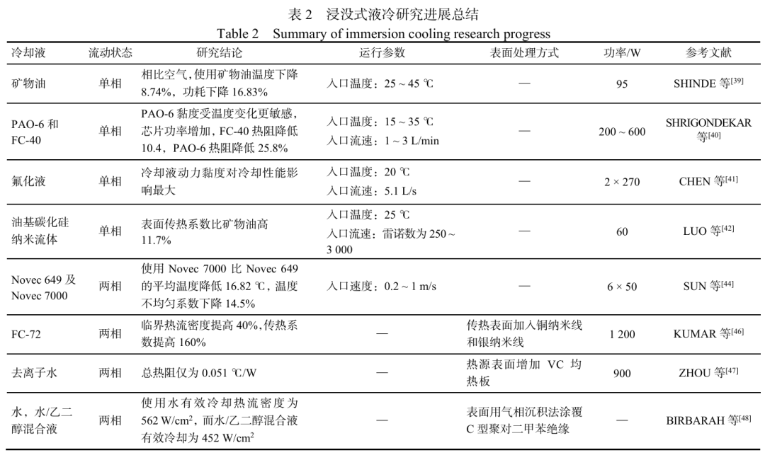 表2對當(dāng)前浸沒式液冷的效果進(jìn)行了總結(jié)。