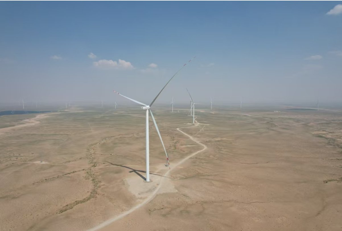 烏拉特后旗100萬千瓦風儲基地保障性項目,位于內蒙古自治區(qū)巴彥淖爾市烏拉特后旗境內。項目建設內容包括安裝100臺10MW風機及其配套工程,同時建設2座220千伏升壓站及運營管理中心等配套設施。此次成功并網的10MW風機,風機輪轂高度125米,葉輪直徑達233米,掃風面積約42000平方米,相當于6個標準足球場。葉片采用高效翼型,采取防沙石設計,運用新材料“碳纖維”等增強風機捕風能力,在相同風速下,可捕獲更多風能,有效提升區(qū)域電力供應水平。項目全容量并網投運后,每年可輸送清潔電力約35億千瓦時,可節(jié)約標準煤139萬噸,減少二氧化碳排放量347萬噸。對促進黃河流域經濟綠色轉型和可持續(xù)發(fā)展具有重要意義。