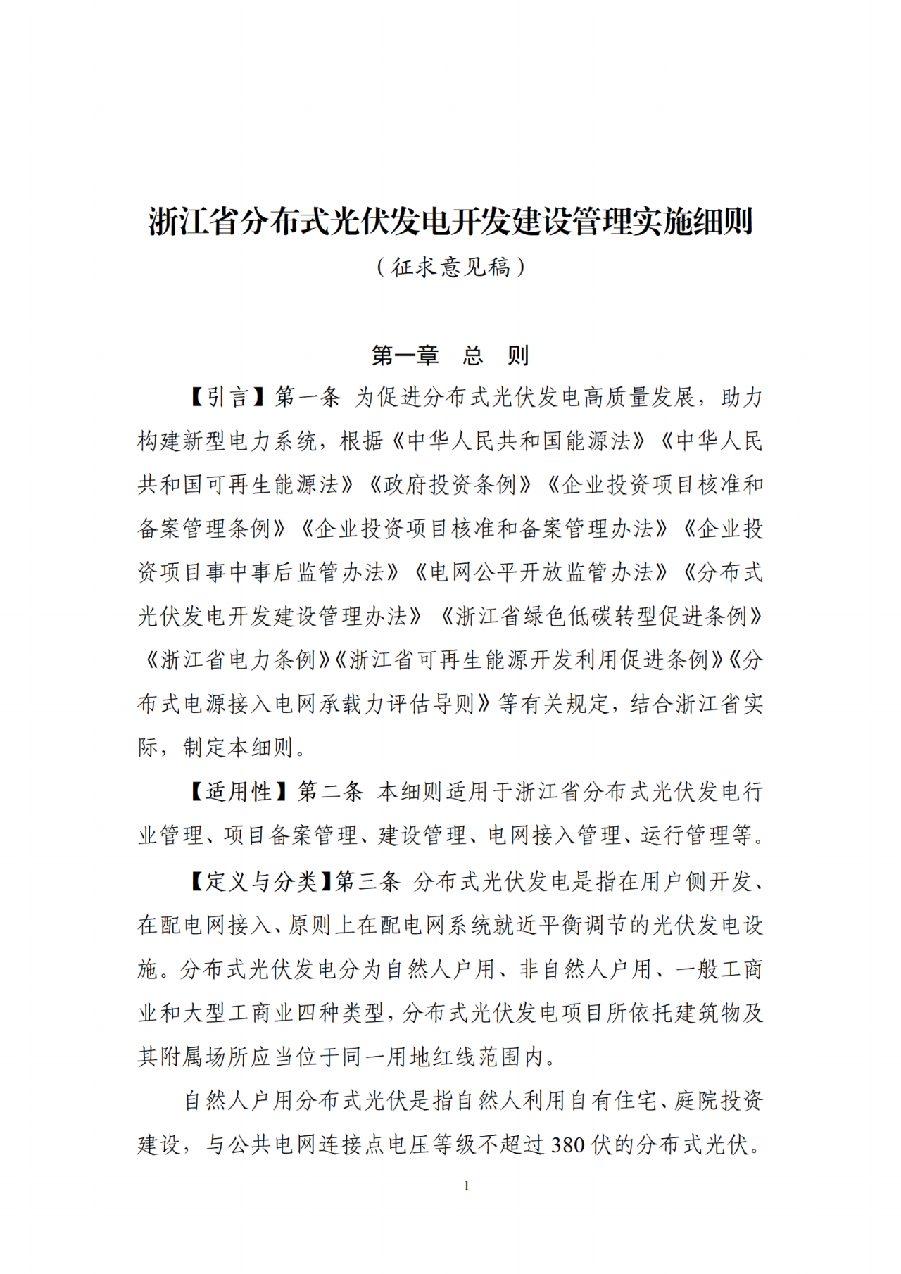 附件:浙江省分布式光伏發(fā)電開(kāi)發(fā)建設(shè)管理實(shí)施細(xì)則(征求意見(jiàn)稿)