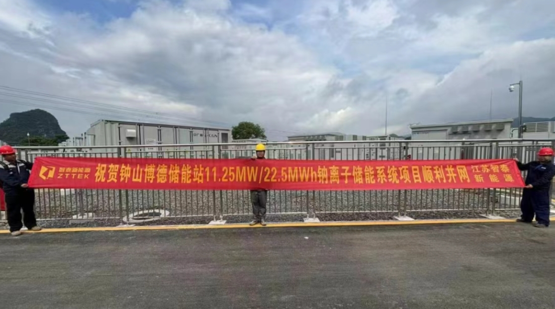 中國儲能網(wǎng)訊:近日,智泰新能源助力中廣核廣西鐘山200MW/400MWh集中共享新型儲能項目成功并網(wǎng),該項目采用“磷酸鐵鋰+鈉電池”新型混合儲能方案,由一套192MW/378.3108MWh鋰電和一套11.25MW/22.5MWh鈉電組成,是廣西壯族自治區(qū)當前裝機規(guī)模最大的新型儲能示范項目?;陧椖繎眯枨?,智泰新能源為該項目提供9個20尺鈉離子電池儲能集裝箱及5個逆變升壓一體倉,共計14個方陣。