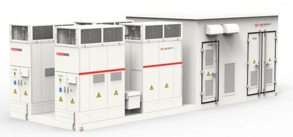 在項目推進過程中,為節(jié)省儲能電站占地面積,采用了5MW/10MWh構(gòu)網(wǎng)儲能單元,交流側(cè)采用4機構(gòu)網(wǎng)儲能變流器并聯(lián)技術(shù),將4臺構(gòu)網(wǎng)儲能變流器集成于一套5MW構(gòu)網(wǎng)儲能升壓一體機中,較傳統(tǒng)構(gòu)網(wǎng)方案占地面積降低30%。