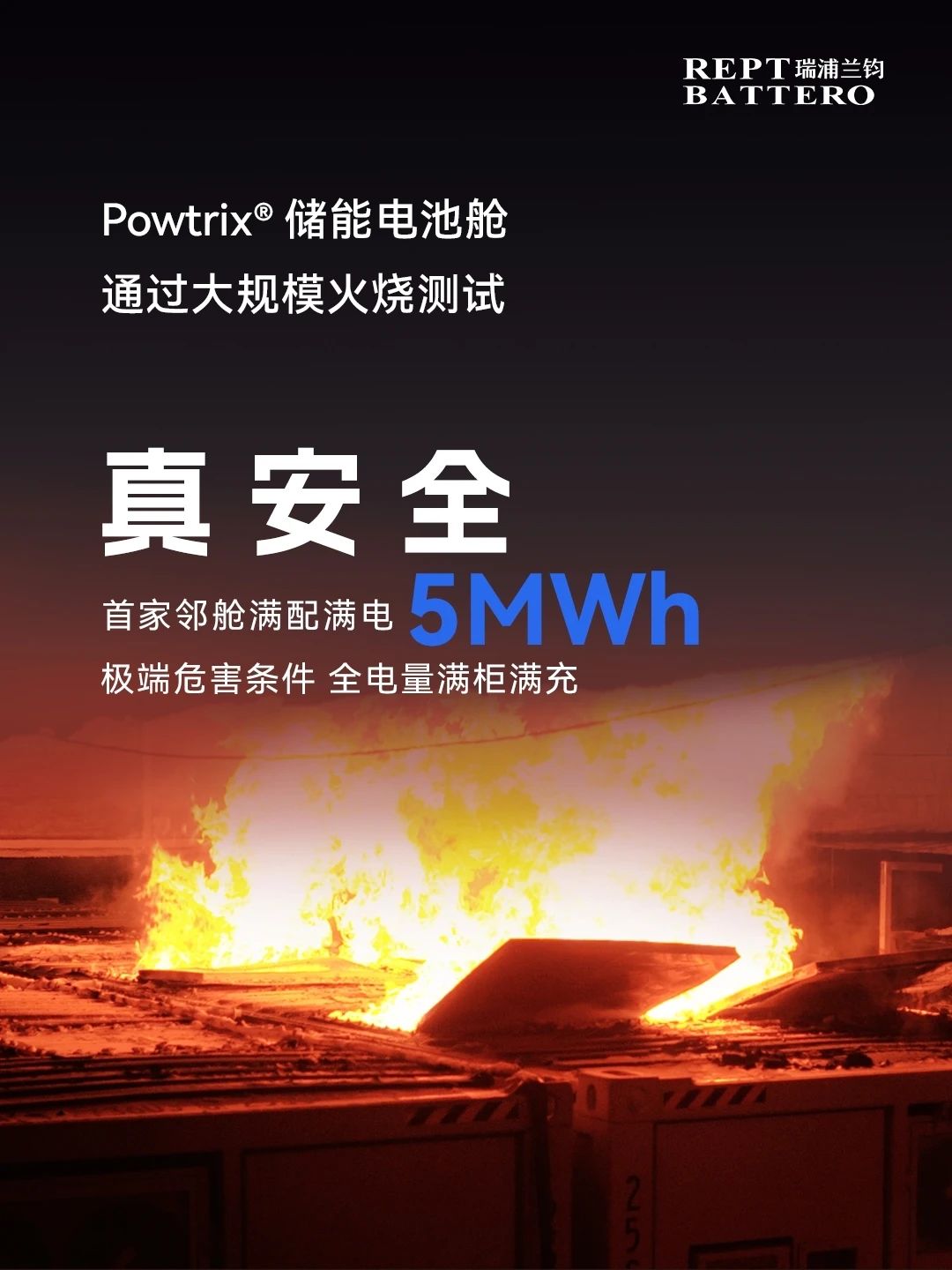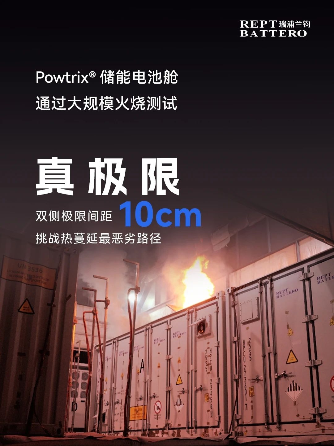 中國儲(chǔ)能網(wǎng)訊:瑞浦蘭鈞鄰艙全電量滿配滿充5MWh的Powtrix®儲(chǔ)能電池艙成功通過 CSA/ANSI C800 極端安全測試。