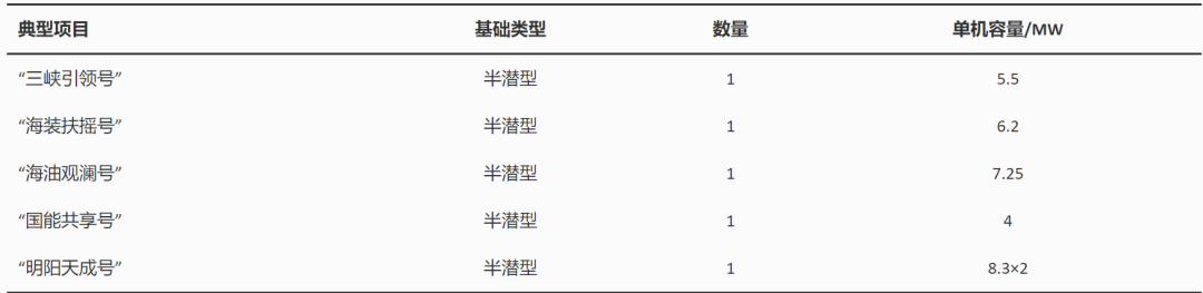 表1 我國投產(chǎn)的漂浮式風力機樣機項目