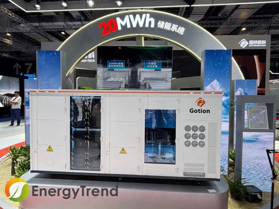 國軒高科展出了20MWh乾元智儲(chǔ)系統(tǒng),該系統(tǒng)搭載的是314Ah電芯,通過優(yōu)化系統(tǒng)Pack并聯(lián)設(shè)計(jì)和散熱布局,最終實(shí)現(xiàn)單體集裝箱20MWh容量的突破。