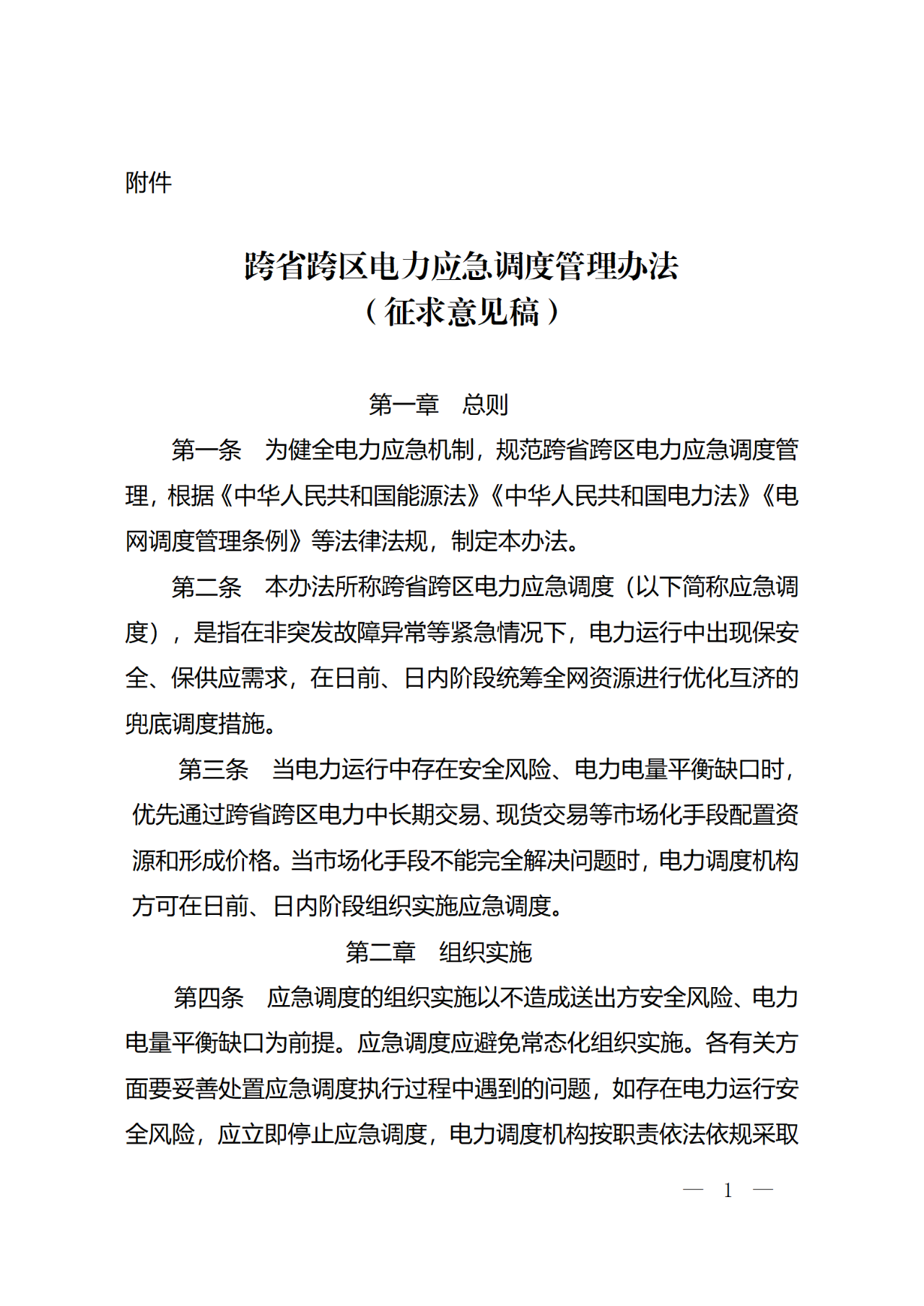 附件:跨省跨區(qū)電力應(yīng)急調(diào)度管理辦法(征求意見(jiàn)稿)