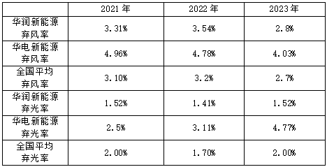 表3:2021—2023年華潤(rùn)新能源和華電新能源棄風(fēng)棄光率