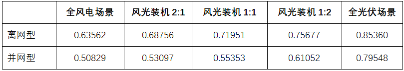 表5:不同風(fēng)光裝機(jī)配比下數(shù)據(jù)中心單位用電成本(元/千瓦時(shí))
