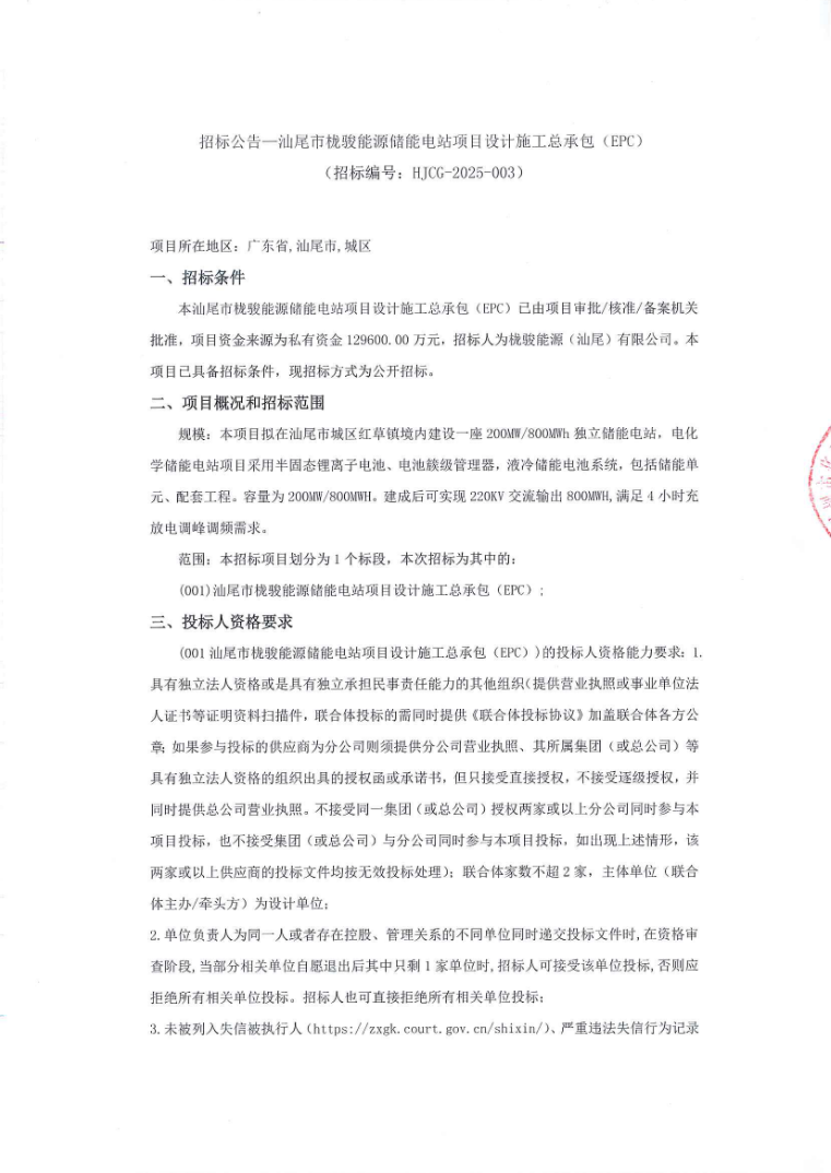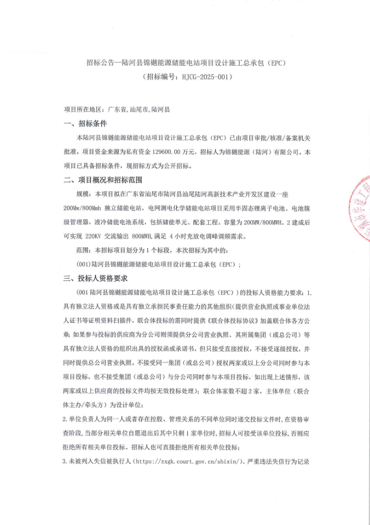 中國儲能網(wǎng)訊:6月18日,廣東兩項目儲能電站EPC招標啟動??傄?guī)模達400MW/1600MWh。
