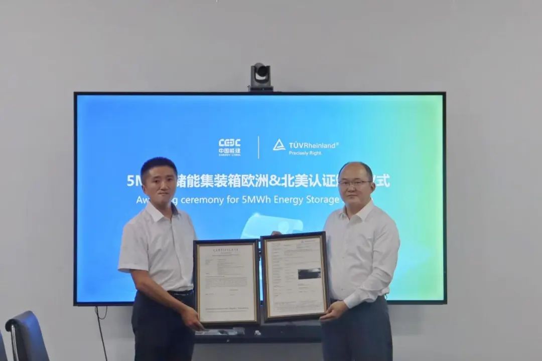 中國儲能網(wǎng)訊:近日,中儲科技5MWh集裝箱式液冷儲能系統(tǒng)產(chǎn)品順利通過CE、CB和UL9540A認證,取得TüV萊茵國際權威認證證書。德國TüV萊茵大中華區(qū)電力電子產(chǎn)品服務總經(jīng)理董斌、公司儲能裝備研究院副院長左彬等雙方代表出席頒證儀式。這一突破性進展,標志著公司在產(chǎn)品安全、性能及合規(guī)性方面全面接軌國際標準。