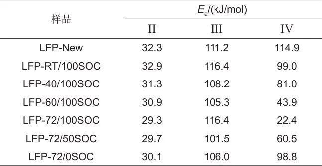 表3 LFP電池樣品在各階段(II~IV)的表觀活化能Ea