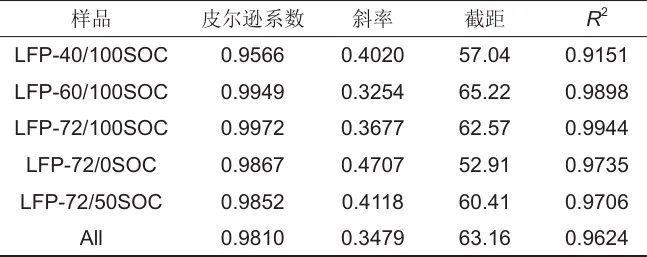 表4 LFP電池樣品SOH與特征峰強相關(guān)性擬合結(jié)果