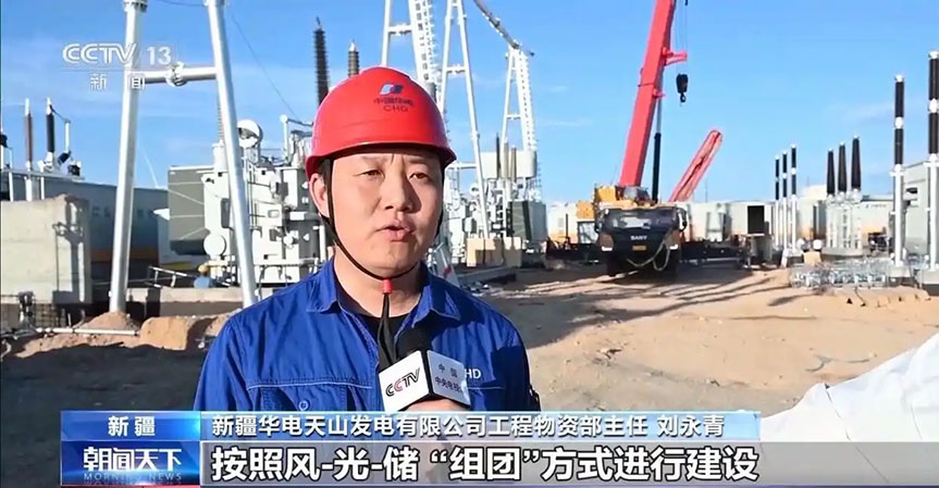 新疆華電天山發(fā)電有限公司工程物資部主任 劉永青:項目采用風光同場布置,按風-光-儲“組團”方式建設,同步建設8座220KV匯集站,是國內(nèi)首個“風光火儲”一體化運行控制新能源項目。