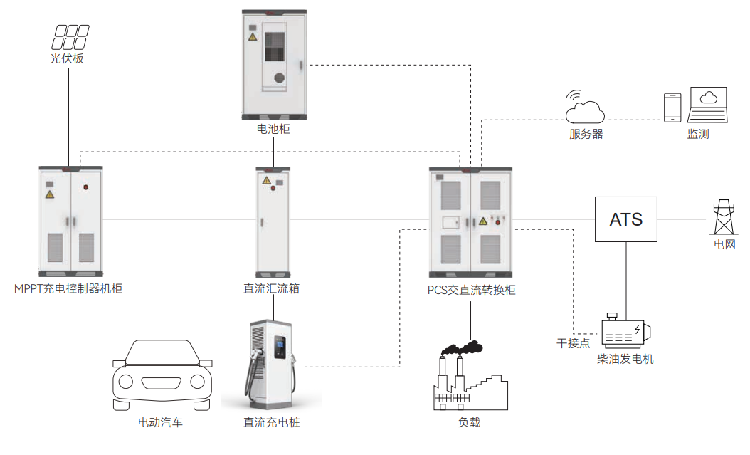 面對(duì)發(fā)展中國(guó)家工商業(yè)場(chǎng)景電力需求痛點(diǎn),優(yōu)能新能源憑借領(lǐng)先的直流耦合工商業(yè)儲(chǔ)能解決方案,創(chuàng)新性地將光伏發(fā)電、儲(chǔ)能系統(tǒng)、柴油發(fā)電機(jī)和直流快充樁有機(jī)整合,打造出"光儲(chǔ)柴充"四位一體的智慧微電網(wǎng)系統(tǒng),為海外用戶提供穩(wěn)定、經(jīng)濟(jì)、可持續(xù)的電力保障方案。