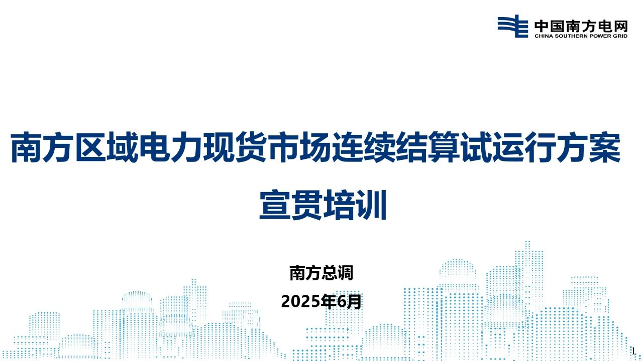 南方區(qū)域電力現(xiàn)貨市場連續(xù)結(jié)算試運行實施方案宣貫培訓(xùn)
