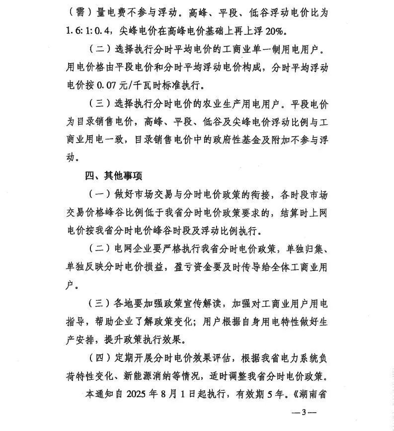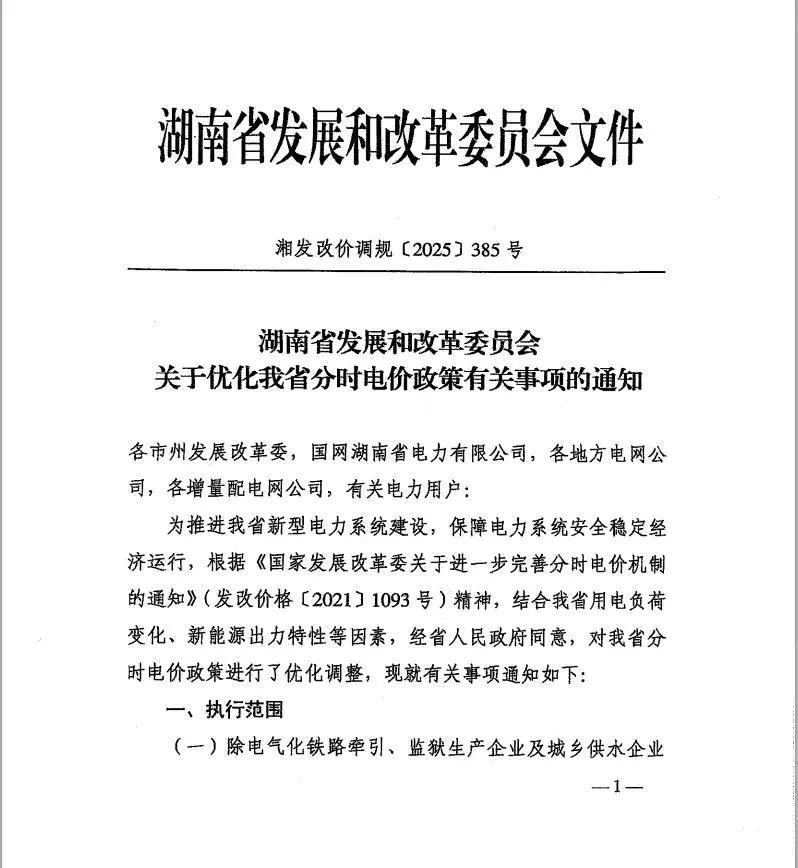 中國儲能網(wǎng)訊:近日,湖南省發(fā)展和改革委員會發(fā)布《關(guān)于優(yōu)化我省分時(shí)電價(jià)政策有關(guān)事項(xiàng)的通知》,對湖南省分時(shí)電價(jià)政策進(jìn)行了優(yōu)化調(diào)整,自2025年8月1日起執(zhí)行,有效期5年。
