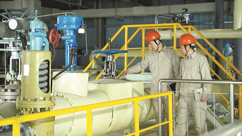 國網(wǎng)江蘇綜合能源公司員工在電極鍋爐輔助調(diào)峰項目現(xiàn)場查看設(shè)備運(yùn)行情況。陶飛揚(yáng) 攝