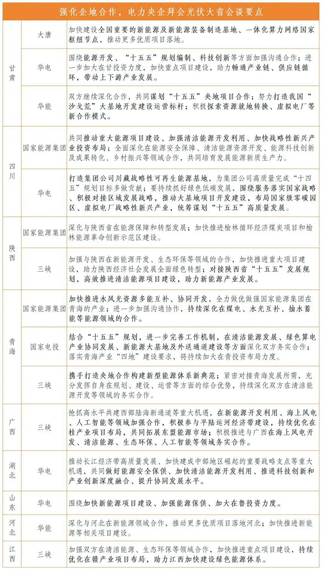 中國儲能網(wǎng)訊:近期,國家能源集團、華電集團、國家電投等電力央企密集拜會甘肅、山東、四川、青海等光伏資源大省,并簽署多項戰(zhàn)略合作協(xié)議。