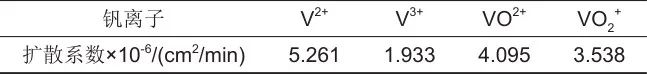 表1 釩離子擴散系數(shù)