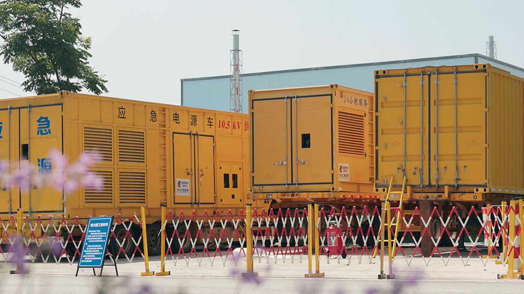 ▲7月13日,國網(wǎng)成都供電公司調(diào)集20臺(tái)中壓發(fā)電車,精準(zhǔn)接入12個(gè)點(diǎn)位,構(gòu)建市內(nèi)最大移動(dòng)電源微電網(wǎng),保障線路施工期間用戶“零感知”。