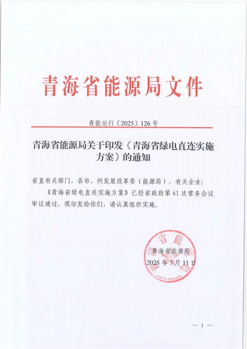 中國(guó)儲(chǔ)能網(wǎng)訊:7月16日,青海省能源局下發(fā)關(guān)于印發(fā)《青海省綠電直連實(shí)施方案》的通知。
