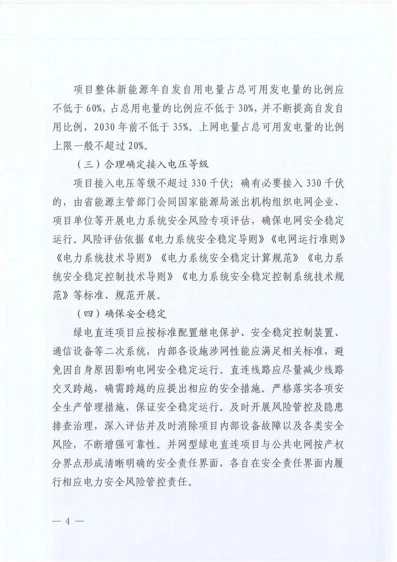 項(xiàng)目整體新能源年自發(fā)自用電量占總可用發(fā)電量的比例應(yīng)不低于60%,占總用電量的比例應(yīng)不低于30%,并不斷提高自發(fā)自用比例,2030年前不低于35%。上網(wǎng)電量占總可用發(fā)電量的比例上限一般不超過20%。