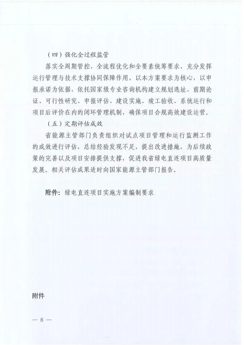 方案適用于采用直連線路向單個(gè)用戶開展的綠色電力直接供應(yīng)的綠電直連項(xiàng)目。探索采用直連線路向多個(gè)用戶組成的聯(lián)合體開展綠色電力直接供應(yīng)的綠電直連項(xiàng)目。用直連線路向多用戶開展綠色電力直接供應(yīng)的,待國(guó)家有關(guān)規(guī)定明確后另行安排。