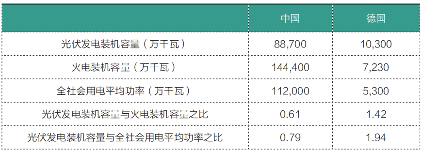 相比之下,截至2024年底,德國的光伏發(fā)電裝機(jī)容量約為1.03億千瓦,火電裝機(jī)容量約為7230萬千瓦,全社會用電平均負(fù)荷為5300萬千瓦。光伏發(fā)電裝機(jī)容量約為火電裝機(jī)容量的142%,為全社會用電平均功率的194%。