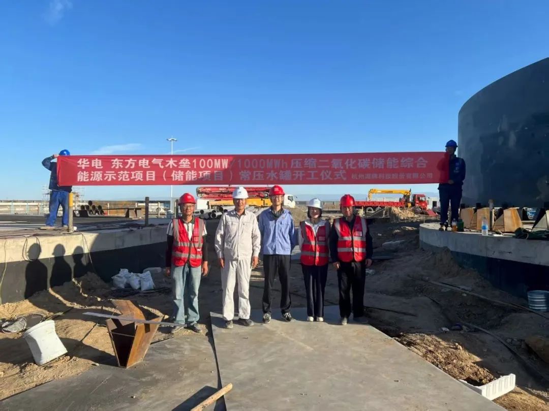 中國(guó)儲(chǔ)能網(wǎng)訊:7月15日,華電-東方電氣木壘100MW/1000MWh二氧化碳儲(chǔ)能綜合能源示范項(xiàng)目(儲(chǔ)能項(xiàng)目)蓄冷蓄熱水罐正式開(kāi)工,杭州源牌科技總工程師劉月琴、項(xiàng)目經(jīng)理董二偉及業(yè)主、總包、監(jiān)理代表參加開(kāi)工儀式。劉月琴在項(xiàng)目經(jīng)理的帶領(lǐng)下根據(jù)技術(shù)要求和技術(shù)參數(shù)仔細(xì)檢查施工工藝和技術(shù)細(xì)節(jié),要求工程團(tuán)隊(duì)務(wù)必嚴(yán)格把控項(xiàng)目質(zhì)量,落實(shí)安全標(biāo)準(zhǔn)。同時(shí)面對(duì)烈日下奮戰(zhàn)的建設(shè)者們,劉月琴代表公司向大家表達(dá)了誠(chéng)摯謝意,感謝他們?yōu)檫吔G色能源建設(shè)所付出的辛勤努力。