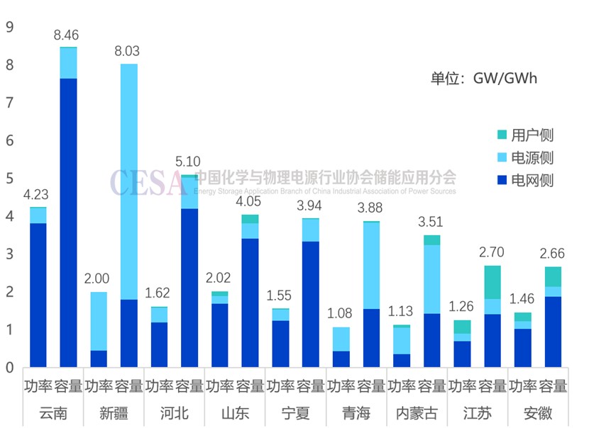 5. 云南、新疆領(lǐng)跑全國(guó),新增裝機(jī)均超8GWh。