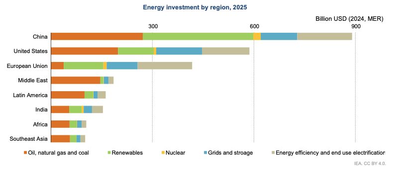 2025年全球各地能源投資規(guī)模預(yù)測 來源:IEA