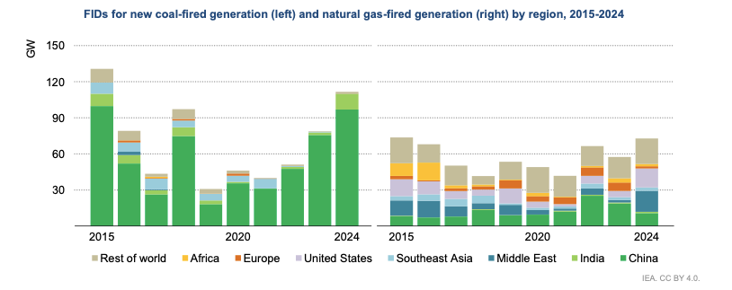 報告顯示,中國用電量快速增長以及對電力安全的擔(dān)憂推動了一輪新的燃煤電廠審批熱潮。2024年,中國批準(zhǔn)新建近100GW燃煤電廠,印度則批準(zhǔn)了15GW,這使得全球煤電廠批準(zhǔn)量達(dá)到2015年以來的最高水平。
